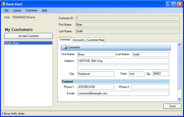 An example of a CAB app is shown in the following diagram. It’s a bank teller application from the Quick Start samples that come with the CAB download.